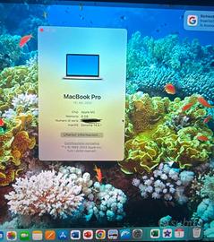 MacBook Pro, 13 ", M2, 2022, Memoria unificata da 8 GB, SSD da 256 GB, retroilluminazione LED con tecnologia True Tone, Touch Bar e Touch ID. Usato in ottime condizioni, completamente funzionante.