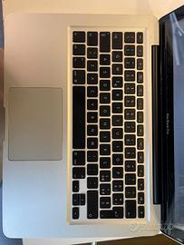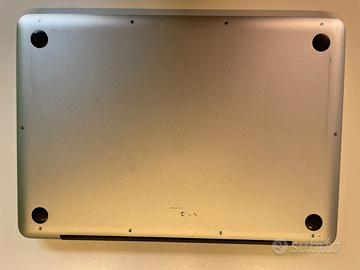 MacBook Pro 13” Mid 2009 con 8Gb di Ram e disco SSD da 250gb, con alimentatore. Batteria sostituita non originale. Piccole ammaccature sul top e un angolo. Tasto barra spaziatrice con piccola crepa. Installato El Capitan.