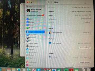 Vendo MacBook Pro 13 pollici, metà 2012, perfettamente funzionante. 🔧 Specifiche principali: •Processore: Intel Core i5 dual-core 2,5 GHz •RAM: 16 GB DDR3 •Grafica: Intel HD Graphics 4000 •Archiviazione: SSD Crucial 256 GB •Display: 13,3” (1280 × 800) •Sistema operativo: macOS Sequoia 15.7.3 💻 Condizioni: usato, senza segni estetici e perfettamente funzionante.