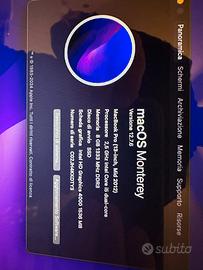 Tenuto in maniera maniacale. Caricabatterie e custodia incluse. macOS Monterey 12.7.6 Disco di avvio SSD 256GB e disco aggiuntivo da 256GB al posto del lettore DVD che é stato levato causa rottura. Unico segno quello come da foto sul retro. Disponibile alla spedizione con Poste e lettera vettura. Il prezzo include il costo della spedizione. Prezzo non trattabile.