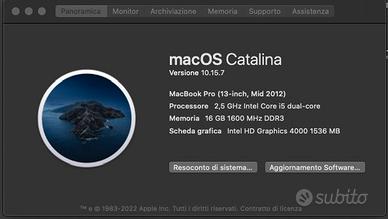 Vendo come da titolo Apple MacBook Pro 13” mid 2012 SSD 525Gb , RAM 16Gb.