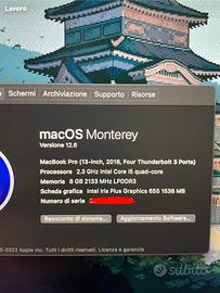 Vendo MacBookPro 13 pollici versione 2018 con TouchBar, per passaggio a modello superiore.
