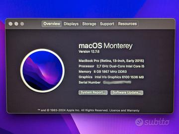 Vendo macbook pro 13'' retina (inizio 2015) in perfette condizioni.