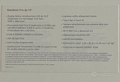 Vendo MacBook Pro 13” Retina – i5, SSD 256 GB, Touch Bar – Ottime condizioni