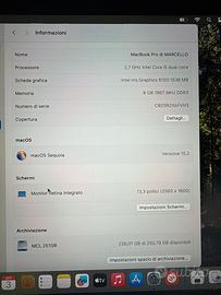 Mac Book Pro 13"retina 2015, aggiornato al OS perfetto in tutto senza graffi, batteria perfetta , display perfetto senza un graffio,e caricabatterie originale.
