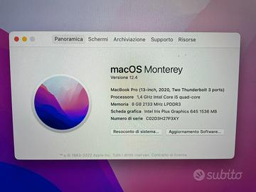 Vendo MacBook Pro 13" 2020 ricondizionato 2021, ho la fattura, scatola originale e caricabatterie. Ritiro a mano su Roma o zone limitrofe