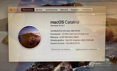 Vendo MacBook Pro 13" metà 2012, perfettamente funzionante e pronto all’uso.