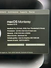 Vendo il mio MacBook Pro 13” con TouchBar usato sempre con cura, completo di caricatore e cavo compatibili. Caratteristiche principali: Processore i5 2,9 GHz RAM 8GB Memoria 256GB Cicli batteria 430 Codice seriale: C02TH1JSGTFJ Condizioni ottime, vendo solamente per passaggio a MacBook Pro M4. Per qualsiasi informazione potete contattarmi. Parole utili: computer, portatile, laptop, pc, iMac, iPad, iPhone, Mac Mini, console, mixer, dj, dispositivo, produzione, musica, studio, lavoro, disegno, editing, video, giochi, console.