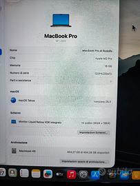 MacBook Pro 14" immacolato, aggiornato al più recente sistema operativo e dotato di Processore M2 Pro. 16Gb di RAM e SSD da 512 GB. Usato pochissimo e con pochi cicli di batteria. Condizioni pari al nuovo.
