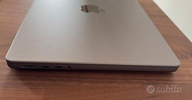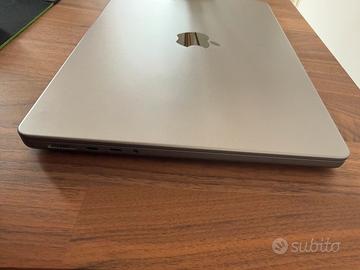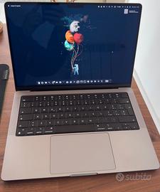 MacBook Pro 14 pollici con chip M1 Pro, configurazione perfetta sia per lavoro che uso personale Caratteristiche principali: Chip Apple M1 Pro RAM 16GB SSD 512GB Display Liquid Retina XDR 14" Tastiera retroilluminata Touch ID Mac tenuto molto bene Nessun difetto funzionale Sempre usato con cura Leggero graffio (quasi invisibile) lato destro del display 📦 Incluso: Caricatore originale Apple con cavo Magsafe Custodia sottile