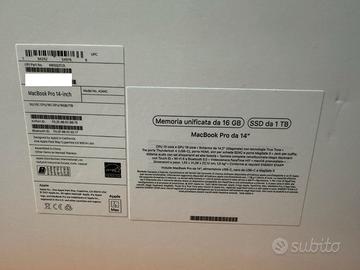 Vendo MacBook Pro 14" modello MKGQ3T/A, acquistato il 2 novembre 2021, in ottime condizioni generali.