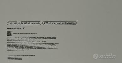 Macbook Pro 14’ M4, 1 Tb e 24 GB memoria unificata