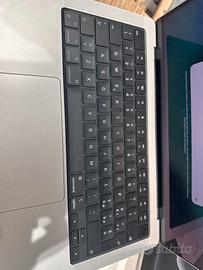 Prodotto Ex-Demo Modello: MacBook Pro 14′ M4 uscita modello 2025 Tipo di processore: Chip M4 Memoria RAM: 16GB di memoria unificata Memoria interna: Unità SSD da 512GB Schermo: Display Liquid Retina XDR da 14,2″ (diagonale);1 risoluzione nativa 3456×2234 a 254 pixel per pollice Sistema Operativo: macOS Sequoia Layout Tastiera: Magic Keyboard retroilluminata con: 79 tasti (ISO), compresi 12 tasti funzione a tutta altezza e 4 tasti freccia (disposti a T capovolta), Touch ID, Sensore di luce ambientale, Trackpad Force Touch per un controllo preciso del cursore, e per abilitare diverse funzioni a seconda della pressione esercitata: clic prolungato, accelerazioni, tratto del disegno variabile in base alla pressione, gesti Multi‑Touch Apple Intelligence è il sistema di intelligenza personale che rende più facile scrivere, creare e fare tutto ciò che vuoi. E grazie a funzioni di ultima generazione per la tutela della privacy, hai la certezza che nessuno potrà accedere ai tuoi dati, nemmeno Apple. Cosa c’è dentro? MacBook Pro 14″ M4 Alimentatore USB‑C Cavo da USB‑C a MagSafe 3 (2 m) Scatola originale Garanzia: Offriamo 12 mesi di garanzia e 14 giorni per il reso
