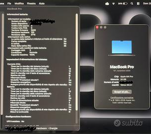 MacBook Pro 14 pollici con chip Apple M4 Pro Acquistato a Marzo 2026. Il computer è stato solamente avviato e utilizzato pochissime volte esclusivamente in ambito universitario (Word, Safari). Condizioni eccellenti: nessun segno di uso, trattato con massima cura sempre con custodia protettiva e pellicole dbrand sempre presenti. CARATTERISTICHE TECNICHE: -Chip: Apple M4 Pro -Memoria RAM: 24 GB -Archiviazione: 512 GB SSD -Display: Liquid Retina XDR da 14 pollici (3024 x 1964) -CPU: 12 core -GPU: 16 core -Colore: Space Black (Nero Siderale) STATO DEL PRODOTTO: -Cicli di ricarica: Solo 3 cicli (come si nota dall’ultima foto) -Capacità massima batteria: 100% -Condizioni estetiche: Perfetto, senza un graffio, tenuto perfettamente con pellicola dbrand di colore nero -Garanzia: La garanzia scade il giorno 10 marzo 2027; è possibile aggiungere AppleCare fino al giorno 10 maggio 2026 -Versione Software: macOS Tahoe Versione 26.3.1 COSA RICEVI: -MacBook Pro 14'' con chip M4 Pro -Scatola originale completa -Alimentatore USB-C da 70W -Cavo da USB-C a MagSafe 3 (2 m) -Accessori inclusi nel prezzo scritti qui sotto (custodia e pellicola dbrand) ACCESSORI INCLUSI: Oltre alla dotazione originale completa scritta sopra, includo: -Custodia protettiva dedicata in tessuto grigio -Pellicola skin dbrand protettiva (kit completo, valore 54€) già applicata professionalmente sulla parte esterna (sopra e sotto) e sul trackpad e zona dei polsi (nelle foto 3 e 4 si vede il computer con le pellicole già applicate e ancora nuove e perfette; attenzione: nelle prime 2 foto non era stata applicata); per vedere la pellicola online sul sito dbrand, selezionare ‘MacBook Pro 14”’; quella applicata è il kit completo in vinile 3M alta qualità colore Matte Black NOTE SULLA VENDITA: -Prezzo: 2250€ totali trattabili (incluse pellicole protettive installate e custodia) -Modalità di Vendita: Scambio a mano in zona Treviso e provincia -Vendo per passaggio ad altro modello PER ALTRE INFO CONTATTATEMI