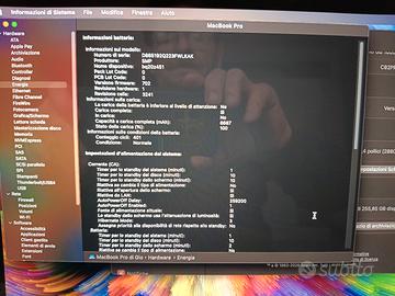 Cpu. i7 quadcore da 2.5 ghz, 16 gb ram , 256 ssd pci Gpu AMD 2 GB , batteria normale + caricabatterie originale