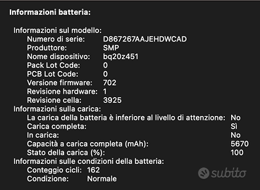 🔋 Batteria in ottime condizioni: solo 162 cicli di carica