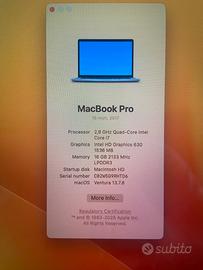 MacBook PRO 15” 2017 con touch bar e tastiera inglese.