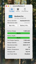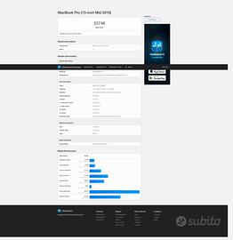 MacBook Pro 15” late 2018 Argento in ottime condizioni, perfettamente funzionante e performante. Acquistato il 21 dicembre 2018, perfetto esteticamente sempre tenuto con cover. Specifiche Tecniche: - Processore: Intel Core i7 6-core a 2,6 GHz - RAM: 16 GB 2400 MHz DDR4 - Archiviazione: 500 GB SSD - Doppia Scheda Video: Intel UHD Graphics 630 (1536 MB) per il risparmio energetico + AMD Radeon Pro 560X con 4GB di memoria GDDR5 dedicata per le alte prestazioni, ottimo per editing audio video e fotografia. - Display: Retina 15,4 pollici (2880x1800) - Tastiera con Touch Bar e Trackpad: Layout ITA, perfettamente funzionanti e in ottimo stato. Salute batteria 98,6%, con soli 49 cicli (vedi screen coconutBattery allegato). Le ultime foto mostrano i risultati reali dei benchmark CPU e GPU: le prestazioni sono perfette e pari al nuovo. Essendo un processore Intel, supporta l'installazione nativa di Windows tramite Boot Camp (ideale per chi necessita di entrambi i sistemi operativi, funzione non più disponibile sui Mac recenti). Completo di scatola originale e caricabatterie, nessun difetto, pronto all’uso.