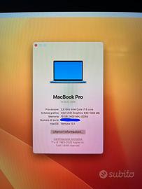 Vendo MacBook Pro 15" 2018 acquistato per utilizzo domestico. Vendo per inutilizzo dato computer aziendale. Vendo in perfette condizioni con pochi cicli di ricarica, con scatola originale, manuali ed istruzioni e alimentatore da 96W.