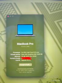 MacBook Pro anno 2019 processore i9 octacore RAM 32gb 2400hz memoria 500gb ottime condizioni