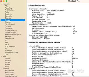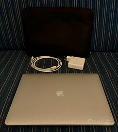 MacBook Pro 15” Apple, modello del 2018 con Touch Bar, processore i7, 16gb di Ram, 256 gb di hard disk. Condizione batteria come nuova (233 cicli di carica dal 2018). Con scatola originale e custodia. Come da foto.