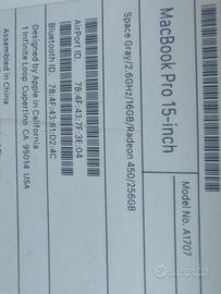 MacBook pro 15 retina con touch bar 16 gb ram ssd 256 perfetto nessun graffio usato solo in casa, 130 cicli ricarica con scatola e costudia alimentatore originale ottimo affare.