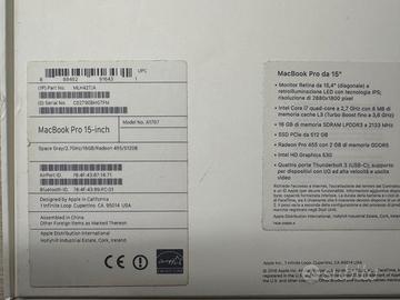 Modello: Apple MacBook Pro 15”