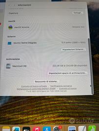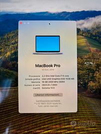 Macbook Pro 15-inch, 2018 Processore: 2,2 GHz Intel Core i7 6 core Scheda grafica: Intel UHD Graphics 630 1536 MB Archiviazione: 250 GB Memoria: 16 GB 2400 MHz DDR4 macOS: Sonoma 14.5 In dotazione: Caricatore