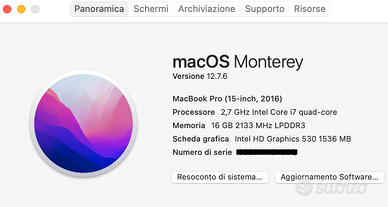 Vendo per cambio modello MacBook Pro 15 pollici, acquistato nel 2017.