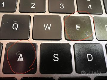 I tasti A ed E presentano un leggero segno d’usura (vedi foto), la tastiera, touchbar e touchpad funzionano perfettamente.