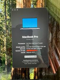 Apple Macbook Pro 15 pollici 2017 versione A1707. Una delle ultime versioni con Touchbar..