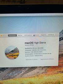 Vendesi in ottime condizioni macbook pro del 2009, perfettamente funzionante e con caricabatterie originale. Il computer è stato aggiornato a macos high sierra Processore intel 2,66 ghz Memoria ram 8gb ddr3 Scheda video nvidia geforce 9400m 256mb Hard disk SSD da 500gb