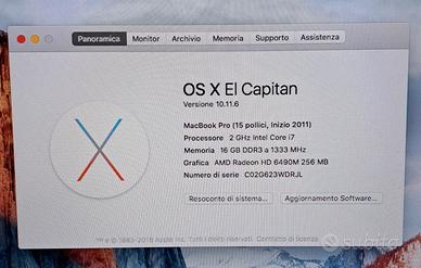 Vendo MacBook pro 15 pollici del 2011 ricondizionato nel 2015 con aumento di ram e ssd integrata.