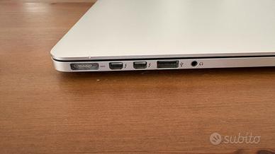 Vendo modello come da titolo. Formattato a nuovo, può arrivare con aggiornamento fino al sistema operativo Big Sur. Modello mid 2014. Presenta segni di usura come la guarnizione di plastica del monitor in alcuni punti. Vedi foto. Funziona perfettamente. Vendo insieme al computer (con sua scatola originale) il caricabatterie tenuto maniacalmente e adattatori vari originali come da foto. Intel Core i7 quad-core a 2,2GHz (Turbo Boost fino a 3,4GHz) 16GB di memoria DDR3L a 1600MHz su scheda Unità flash PCIe da 256G