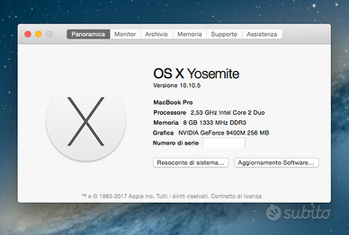 - Sistema operativo installato: macOS Yosemite (pulito, pronto all’uso)
