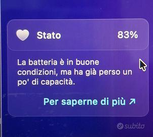 Macbook Pro 16’’ 2019 Processore - Intel Core i9 8 core 2,3 GHz Scheda grafica - Intel UHD Graphics 630 + AMD RAM - 16 Gb DDr4 Memoria - 1 Tb Computer tenuto maniacalmente. Presenta un piccolo danno da bottatura in uno degli angoli. È stato utilizzato per i primi 3 anni per editing video a scopo universitario, un paio di live streaming dopodichè soltanto per ricerche sul web. I cicli di ricarica sono circa 350. Il prezzo è leggermente trattabile.