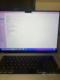 Vendo MacBook Pro 16 pollici (modello 2021) con chip Apple M1 Pro, 16 GB di RAM e SSD da 512 GB.