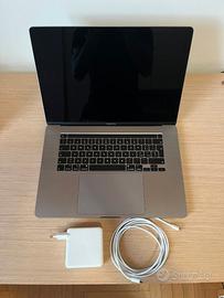 PC in perfette condizioni, vendo per poco utilizzo. Tutta la componentistica hardware è perfettamente funzionante. Privo di graffi, come da foto. Presente il caricatore USB-C 96W originale. Specifiche del PC: - Processore : 2,3 GHz Intel Core i9 8 core - Scheda grafica: Intel UHD Graphics 630 1536 MB - RAM: 16 GB 2667 MHz DDR4 - SSD: 1 TB - Monitor Retina integrato: 16 pollici (3072 × 1920)