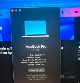 Vendo macbook pro m1 16 pollici 1tb di memoria comprato all apple store via del corso ad ottobre 2021 completo di scatola e tutto tenuto in modo maniacale mai avuto problemi vendo per passaggio al modello air