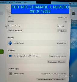 LEGGETE BENE E TUTT0 C0ME DESCRITT0 non spedisco PER INF0 CHIIAMARE IL0815113339 N0 PERDITEMP0 N0 C0LLEZI0NISTI DI F0T0 nessun segno e nuovo usato pocchissimo sempre su scrivania mai portato in giro CARATTERISTICHE COMPLETE IN F0T0 BATTERIA 59 CICLI DOPPIA SCHEDA VIDEO tutto in italiano mai aperto mai sostituito nulla tutto originale comprato nuovo nel settembre 2022 presso apple store Caserta Vendo notebook portatile originale apple MacBook Pro M1 pro 16 pollici tenuto in condizioni da amatore nessun segno di usura e completo di tutto scatola e accessori vendo solo per passaggio a nuovo modello Mac book pro max m4 qualsiasi prova presso la mia abitazione caratteristiche in foto COMPLETO DI: scatola completa cavo usb caricatore mega safe fattura di acquisto m2 m3 air 12 13 14 15