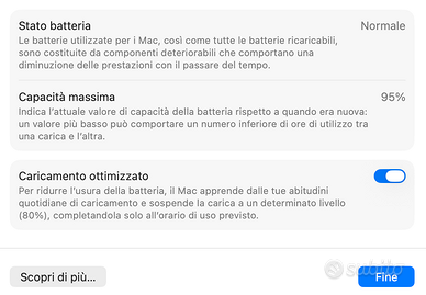 MacBook Pro 16 pollici M1 Pro 16/1Tb tastiera ITA • Modello: 2021 • RAM: 16 GB • SSD: 1 TB • Display: 16 pollici Il Mac in perfette condizioni pari a nuovo, ha la scatola del prodotto ricondizionato certificato Apple. La Batteria con la capacità massima 95%. Solo ritiro a mano a Milano, non spedisco. Caratteristiche: • CPU 10 core e GPU 16 core • Schermo Liquid Retina XDR da 16,2" (diagonale) con tecnologia ProMotion; 3456 x 2234 pixel • Tre porte Thunderbolt 4 (USB-C), porta HDMI, slot per scheda SDXC e porta MagSafe 3 • Jack per cuffie; sistema audio con sei altoparlanti ad alta fedeltà • Tastiera italiana retroilluminata • Magic Keyboard con Touch ID • Wi-Fi 6 e Bluetooth 5.0 • Videocamera FaceTime HD 1080p • Dimensioni e peso: 1,68 x 35,57 x 24,81 cm; 2,1 kg