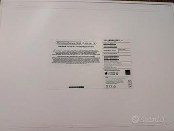 Vendo Apple MacBook Pro 16” con chip M2 Pro (CPU 12-core, GPU 19-core), 16 GB di RAM e SSD da 1 TB, colore Space Gray.