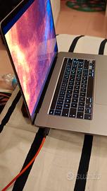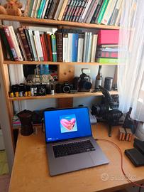 MacBook pro 16" : Intel core i9 | Radeon pro 5500 8gb | Ram 16gb | SSD 1tb . 322 cicli di ricarica batteria in buono stato. schermo tastiera porte e scocca come nuovi, un leggerissimo segno vicino al logo Apple praticamente invisibile.
