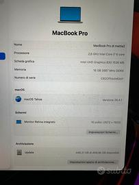 Vendo il mio MacBook Pro 16” con TouchBar usato sempre con cura, completo di scatola originale, caricatore e cavo compatibili. Caratteristiche principali: Processore i7 2,6 GHz 6 Core RAM 16GB Memoria 512GB Codice seriale: C02CP566MD6P Condizioni ottime, vendo solamente per passaggio a MacBook Air M5. Nota bene: piccolo graffio sulla scritta “MacBook” che si intravede leggermente, ma volevo farlo notare. Batteria ovviamente non più duratura come all’inizio ma si riesce ugualmente ad usare senza che sia collegato alla presa elettrica. Per qualsiasi informazione potete contattarmi. Parole utili: computer, portatile, laptop, pc, iMac, iPad, iPhone, Mac Mini, console, mixer, dj, dispositivo, produzione, musica, studio, lavoro, disegno, editing, video, giochi, console.