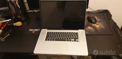 Vendo Macbook pro da 17 pollici Processore intel i7 8 GB RAM HDD 500 GB alimentatore originale Apple VENDO PER PEZZI DI RICAMBIO PERCHE NON SI ACCENDE.