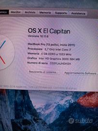 vendo Mac book pro in buone condizioni e funzionante. caratteristiche come da foto. completo di scatola caricabatteria e custodia.