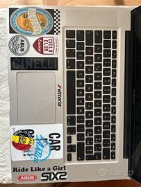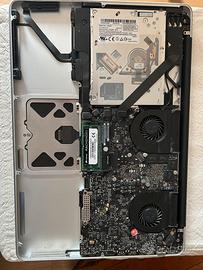 Vendo per ricambi. No hard disk. No batteria. Trackpad venato, ma funzionante (rotto dal gonfiarsi della batteria). Lettore DVD non funzionante. Alimentatore originale e funzionante, ma danneggiato. Trattabile se scambio mano.