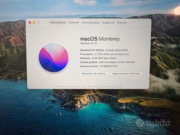 Vendo MacBook pro 2015 128gb perfettamente funzionante e privo di difetti