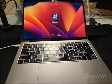 Vendo MacBook Pro 13 pollici, modello 2017 con 2 porte Thunderbolt 3, processore Intel Core i5 dual-core da 2,3 GHz, 8 GB di RAM LPDDR3 e SSD da 256 GB. Sistema operativo aggiornato a macOS Ventura 13.7.6.
