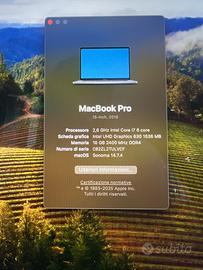 •Display Retina da 15,4” con tecnologia True Tone e alta risoluzione •Processore Intel Core i7 6 core